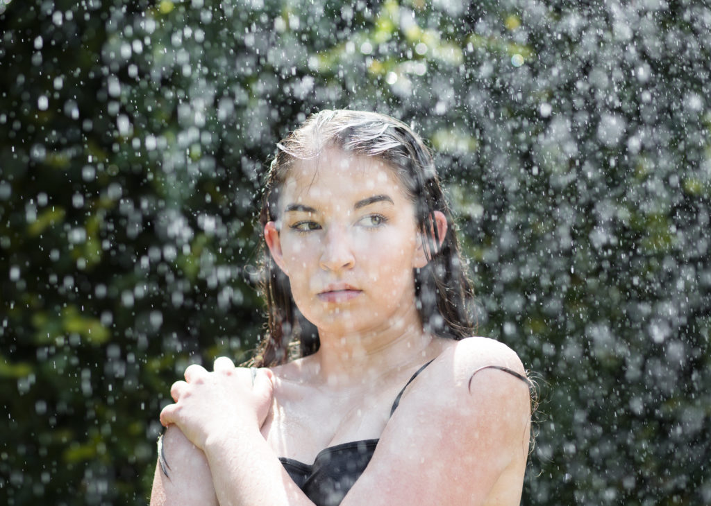 No literally, I made it rain. I have seen so many amazing photos that photographers took in the rain. Whether or not they really were in the rain, or if they edited in the rain, the photos regardless are incredible. I’m too scared to actually take my camera out in the rain so I decided to get a bit more creative with this. I put my brain together with my dad and we came up with this crazy looking contraption that was going to essentially be my rain cloud. This idea came to me right at the beginning of quarantine. I had just finished college as this covid pandemic took over the world and was itching to take some photos. My dad was probably just as excited about this idea as I was. Since everything had shut down, we needed this excitement. After building it we needed to decide on the setting of the sprinkler, then adjust my camera settings to fit accordingly to what we were working with. I won’t lie I was a bit skeptical on if this would actually work. I didn’t know if the pictures would actually turn out the way I was thinking they would in my head. I kept an open mind though as I jumped right under the sprinkler and began shooting. To my surprise the photos actually came out better than I could have even imagined. So go us dad!